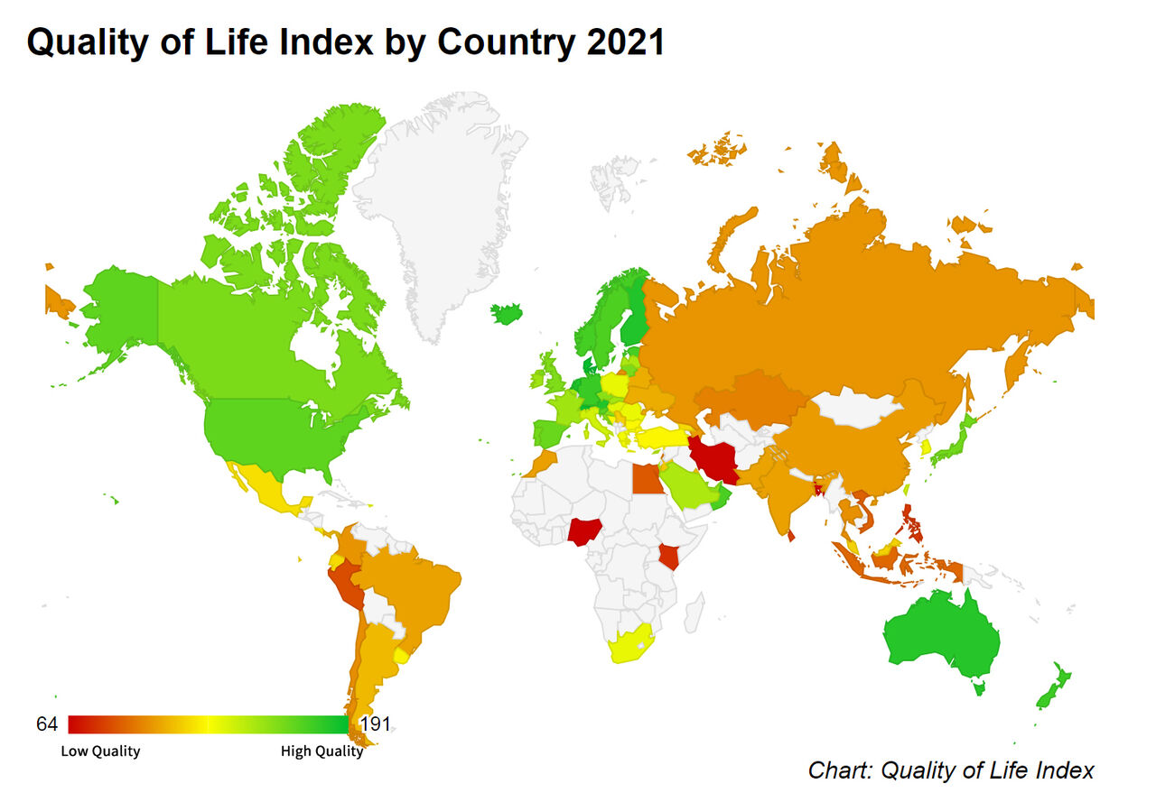 世界中のデータを集めてデータベース化するサービスNUMBEOが様々な指標を比較し、最も住みやすい国ランキング2021を発表した。NUMBEOでは、毎年前期と後期で2回、医療や治安、生活コストなどの指標を比較し、最も住みやすい国ランキングを公表している。