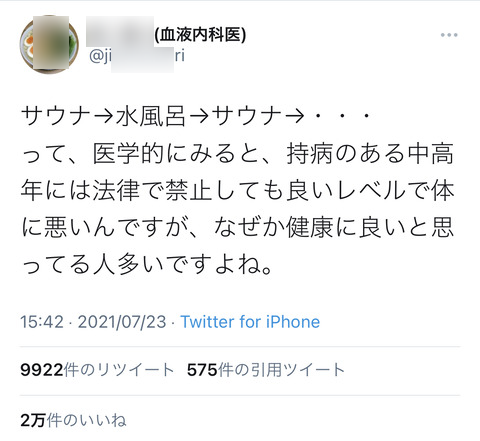 これに怒ってる人って健康に良いと思ってサウナに通ってる人け?
