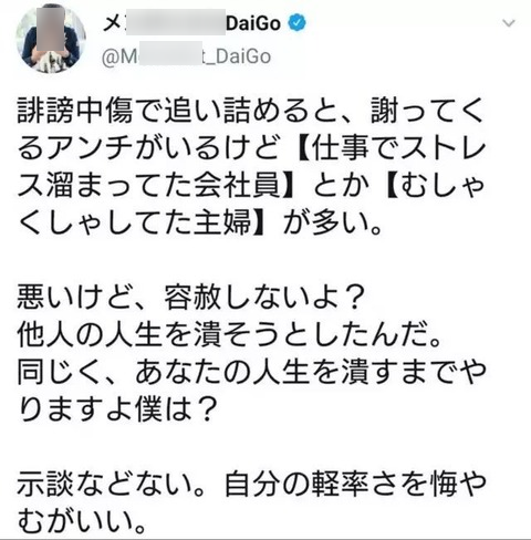 むしろ、それなり人気あるDaiGoでもヘイトしたらちゃんと消えてしまう、てなった方が他のYouTuberも気をつけるかもだし、ここが正念場な様子に見えまする…。