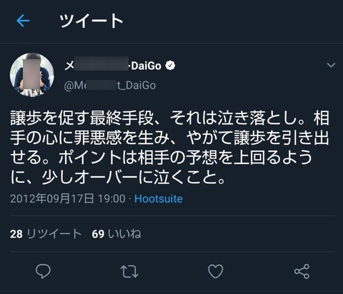 DaiGo氏の言動の奥にある破滅願望や自己破壊衝動の方が